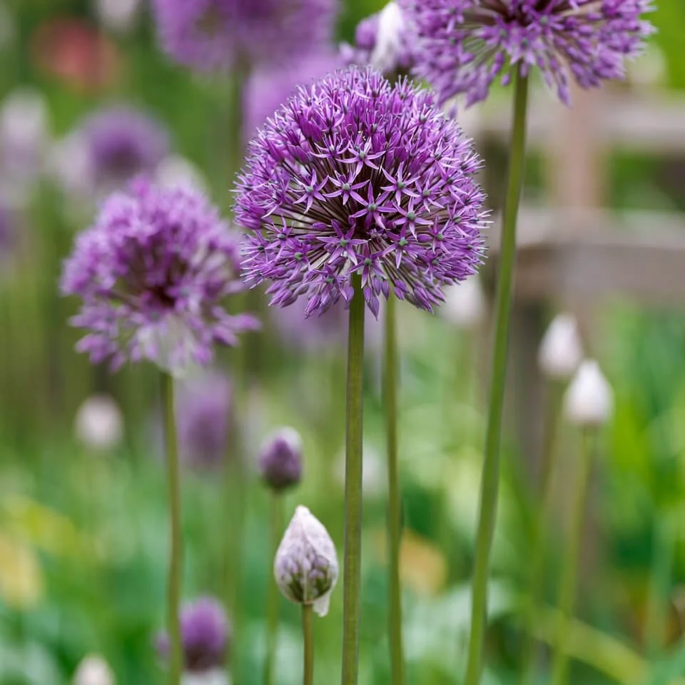| Allium hollandicum 'Purple Sensation' | Large purple globes in June draw bees from afar; excellent pollen source. | Sunny borders among perennials | Plant in a sunny spot and avoid the wettest areas. Plant deeply for stability and good return. |