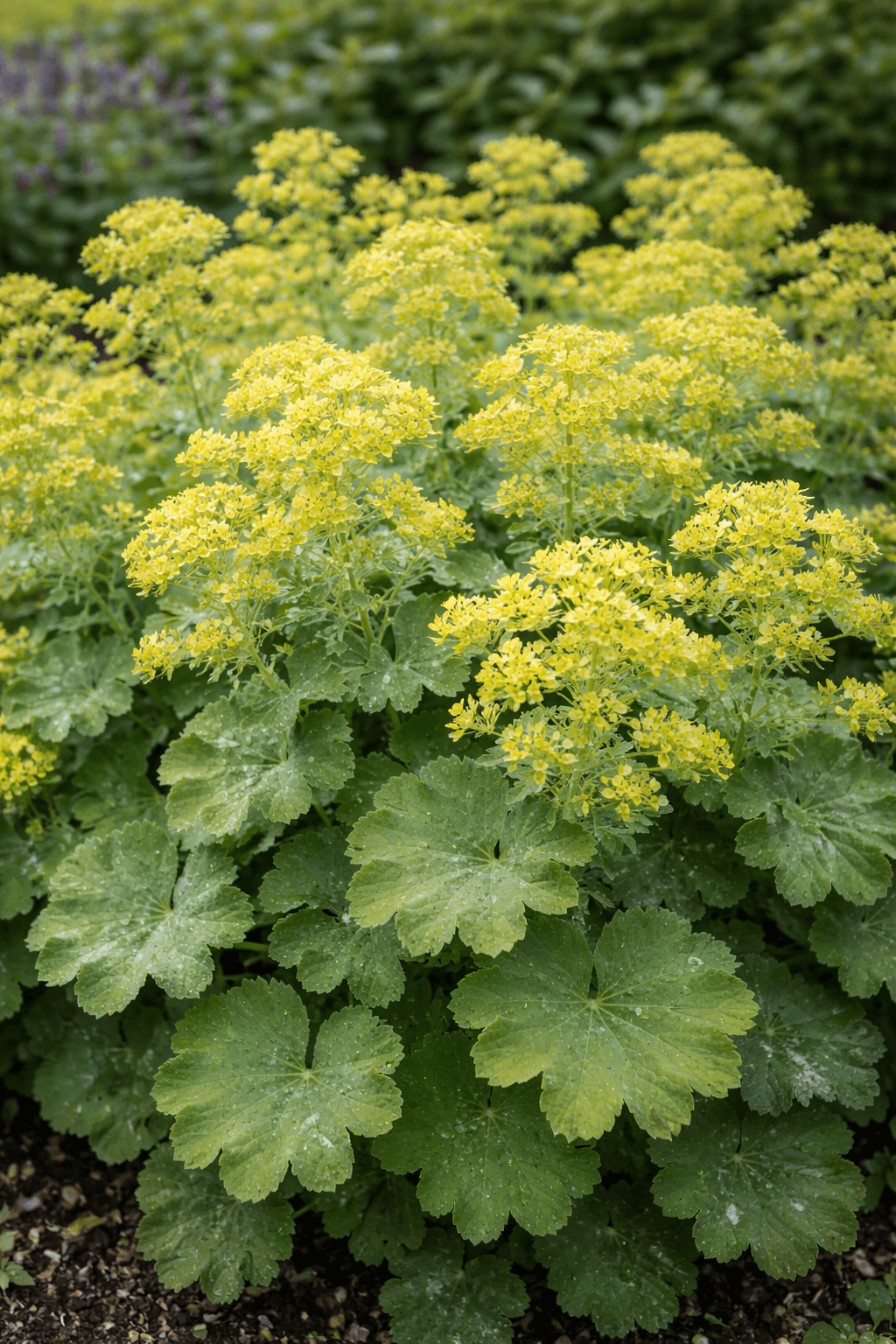 | Alchemilla mollis (lady’s mantle) | Textured foliage and bitter taste reduce browsing once plants mature. | Borders, edges, ground cover | Thrives on clay with minimal preparation. Mulch annually and allow good air flow to reduce mildew. | Autumn or early spring |