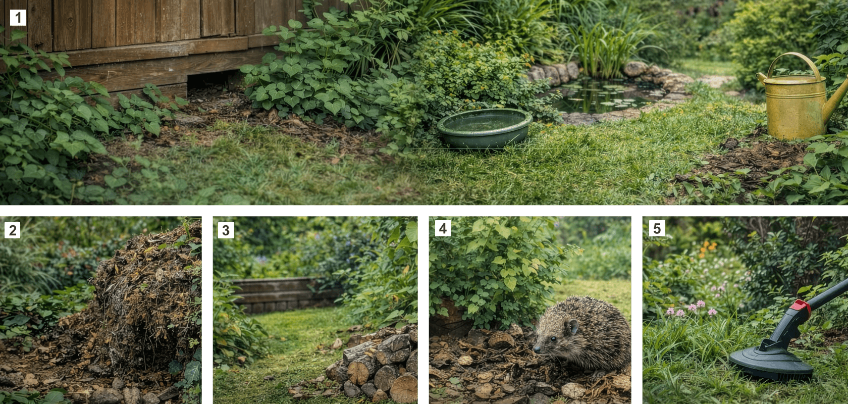 That’s why leaf litter, log piles, hedge bottoms, longer grass, and slightly softer edges are so useful. They don’t attract hedgehogs directly in the way people often imagine. What they do is help support the food source hedgehogs are already looking for.
