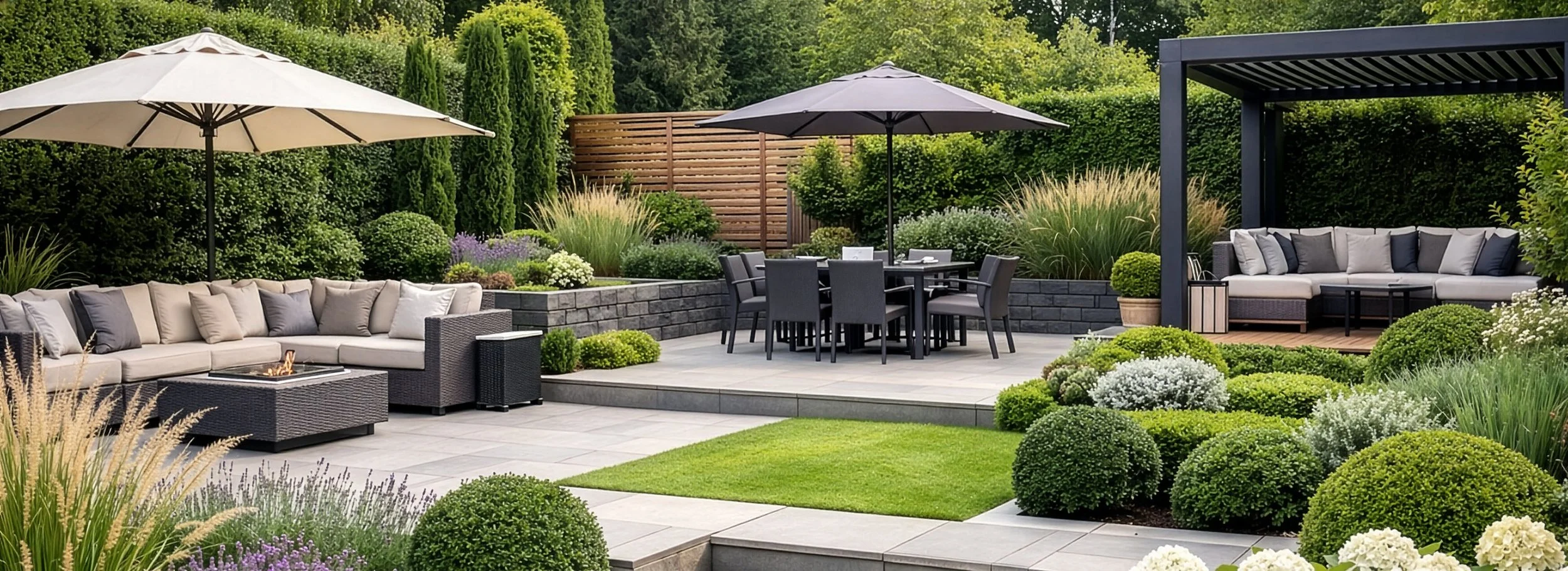 A well-landscaped garden should feel deliberate from the house and comfortable once you step into it. Seating areas need enough shelter to be inviting. Planting needs enough depth to soften the structure. Materials need to feel calm and durable rather than attention-seeking. Where the plot is larger, zoning becomes important so the garden does not feel visually loose or awkwardly exposed.